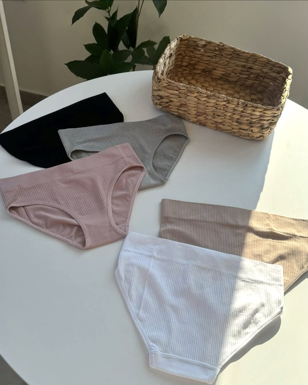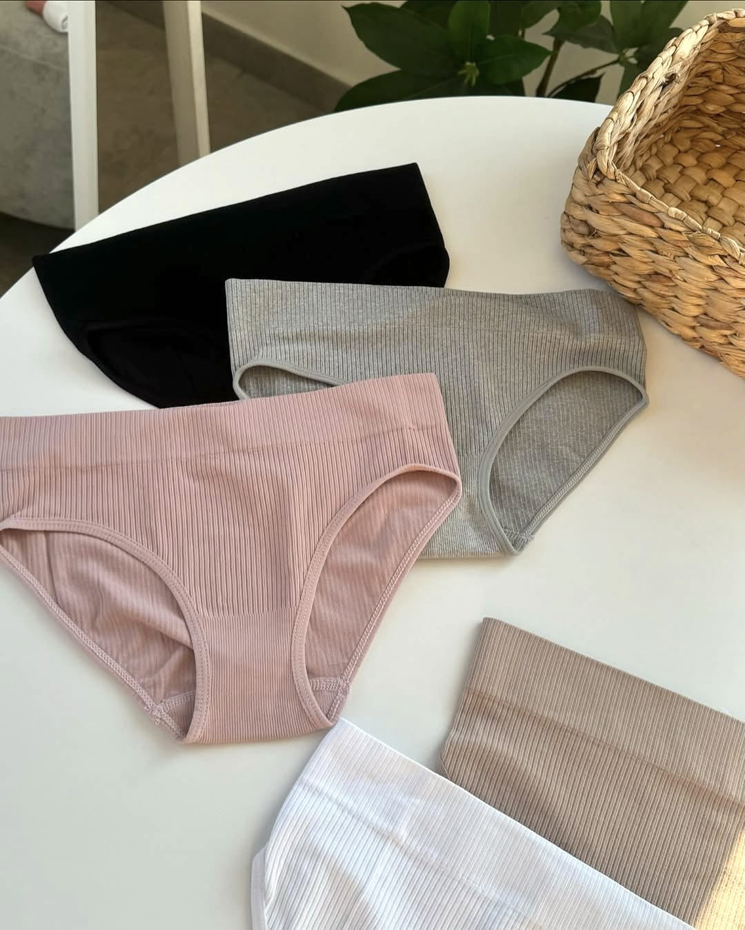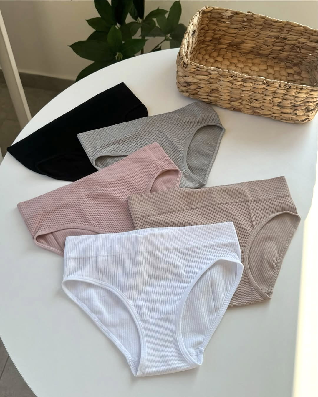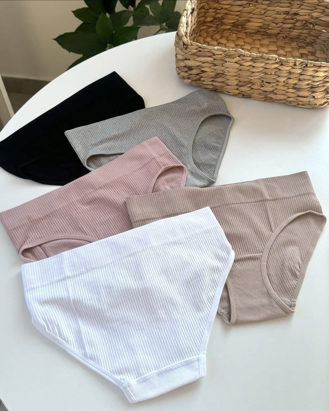 Majtki Pełne prążkowane z wysokim stanem (zestaw 5 sztuk)
